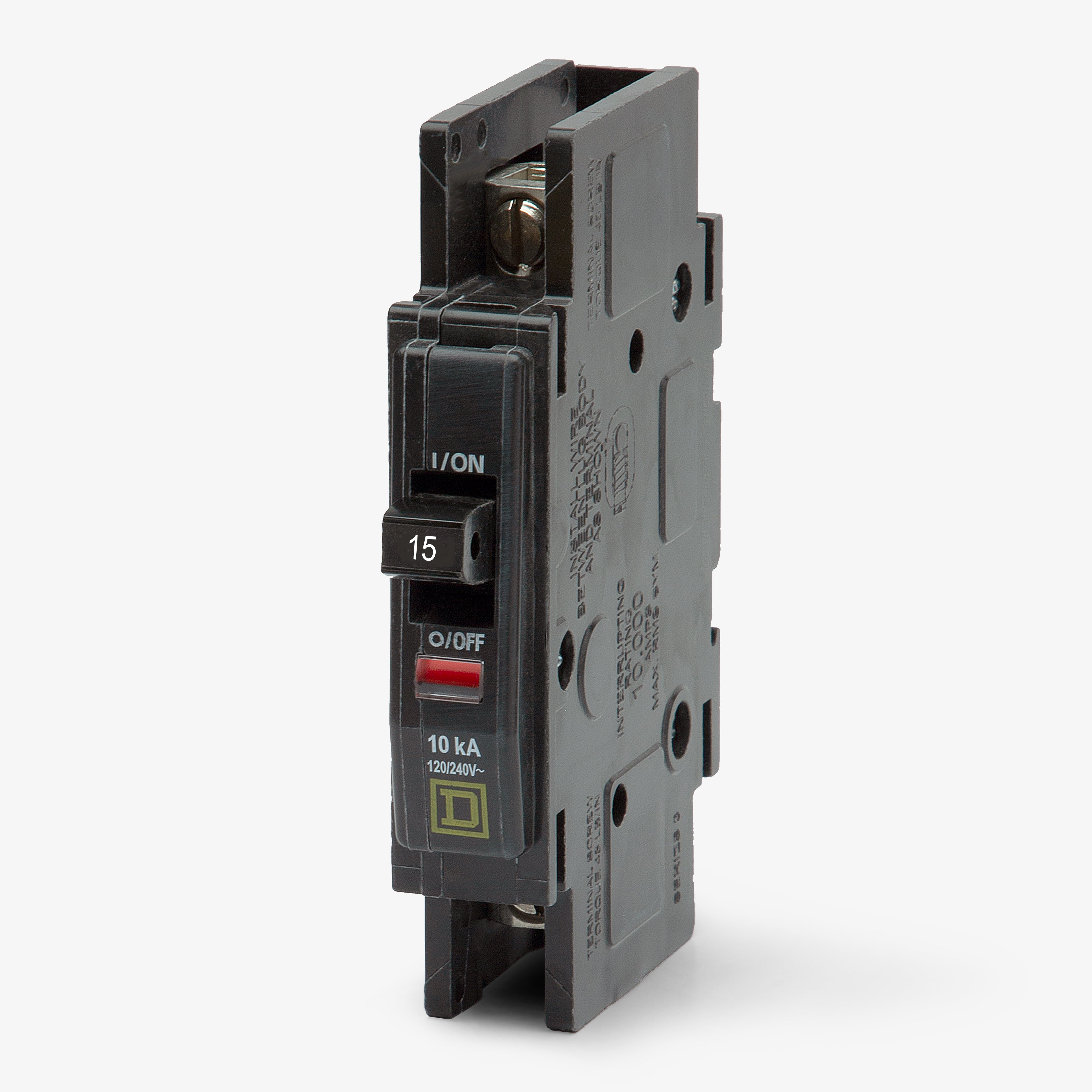 The Square D QOU115 is a 1 Pole thermal magnetic molded case circuit breaker with a current rating of 15 Amps and a voltage rating of 120/240VAC, 48VDC. It has an interrupting rating of 10kAIC at 120V. The QOU115 has a bolt-on connection type and includes long time and instantaneous trip functions.