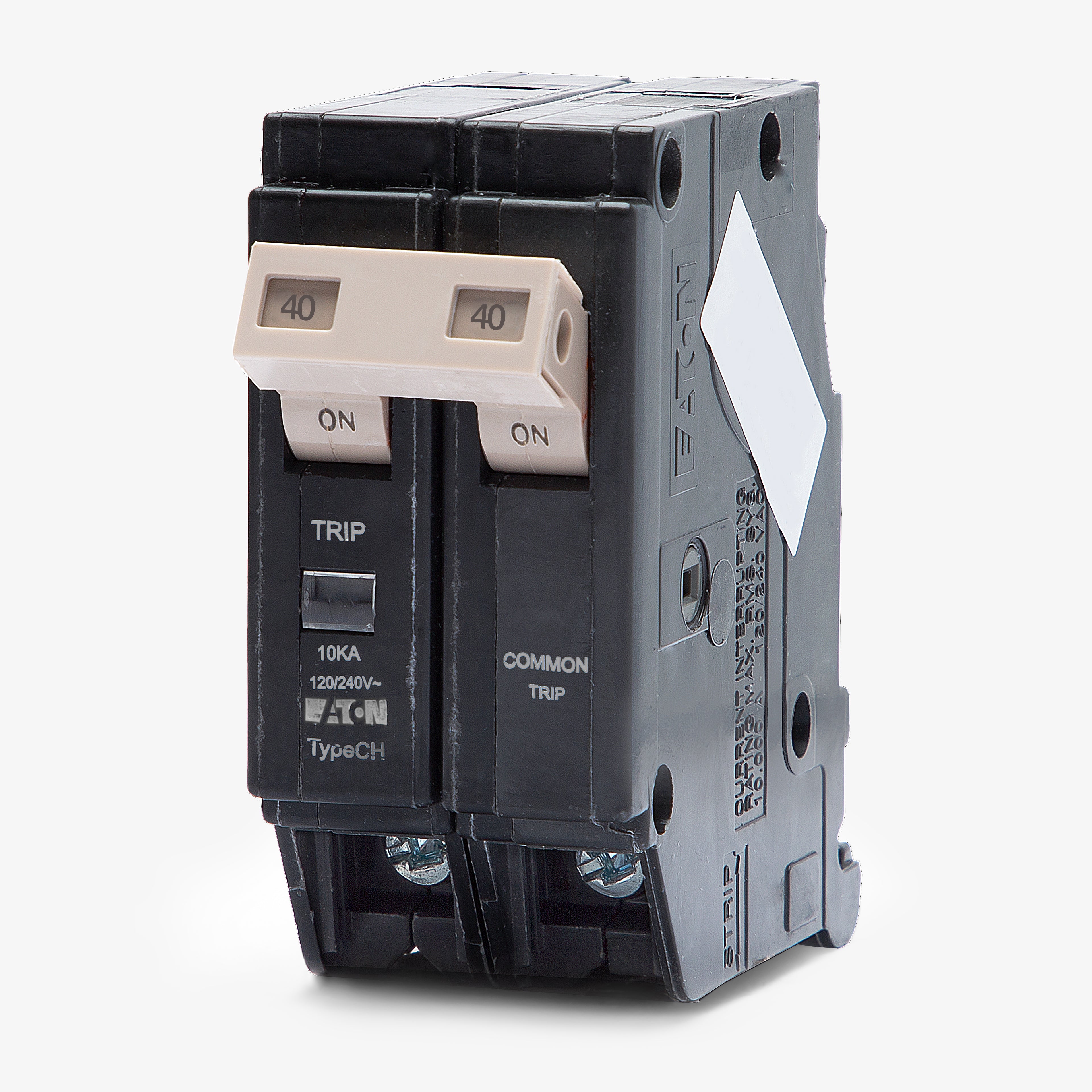 Built for residential applications, the CH240 delivers 40 amps of thermal-magnetic protection. This two-pole component is manufactured to integrate with Eaton's 3/4-inch format enclosures. It mounts into Type CH load centers, utilizing a plug-on configuration for straightforward installation. While this model is standard, it is often substituted by the CHF240 version. Rated at 10kAIC for 120/240V systems, this HACR-rated unit is ideal for HVAC equipment and heavy-duty appliances.