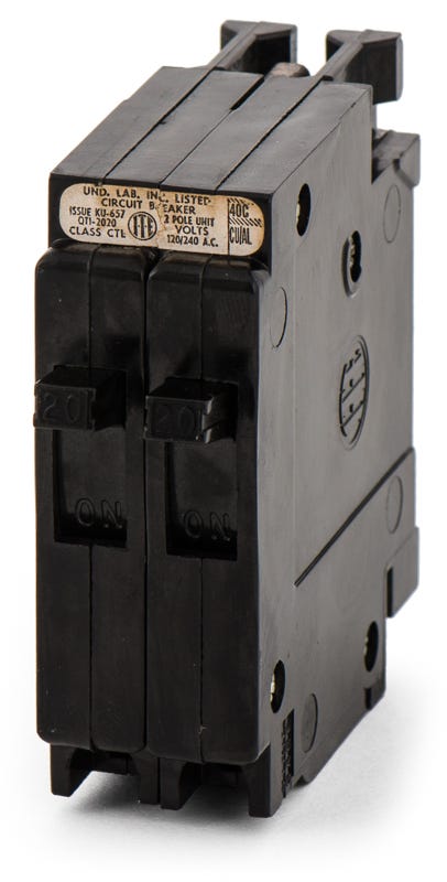 The ITE QTI-2020 is a 2 Pole thermal magnetic molded case circuit breaker with a current rating of 20 Amps and a voltage rating of 120/240V. It has an interrupting rating of 10kAIC at 240V. The QTI-2020 has a feed-thru connection type and includes LI - long-time and instantaneous trip functions.