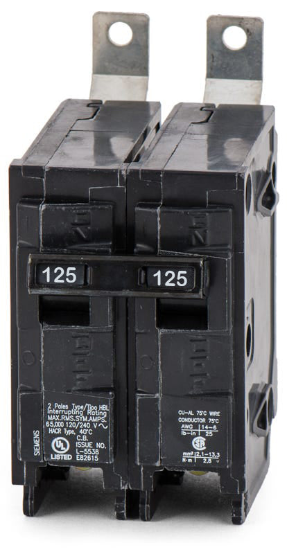 The Siemens B2125HH is a 2 Pole thermal magnetic molded case circuit breaker with a current rating of 125 Amps and a voltage rating of 120/240VAC. It has an interrupting rating of 65kAIC at 120/240VAC. The B2125HH has a bolt-on mounting type and includes long time and instantaneous trip functions.