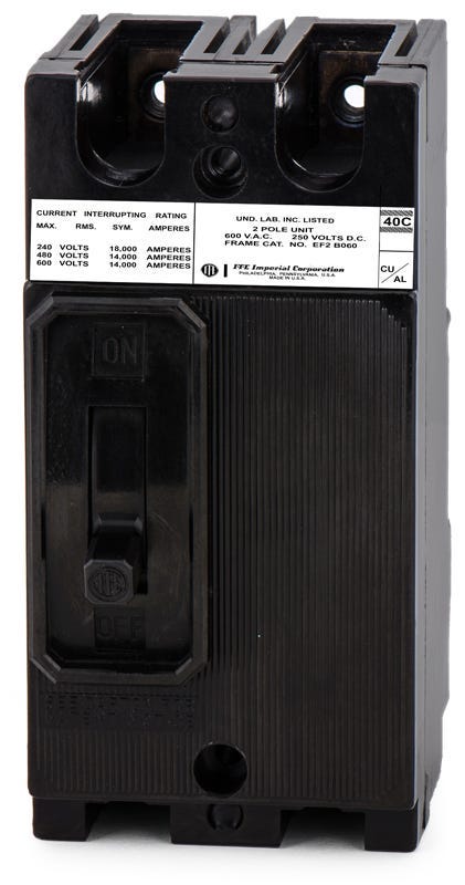 The Siemens EF2B125 is a 2 Pole thermal magnetic molded case circuit breaker with a current rating of 125 Amps and a voltage rating of 600VAC. It has an interrupting rating of 14kAIC@480V. The EF2B125 has a bolt-on connection type and includes long time and instantaneous trip functions.