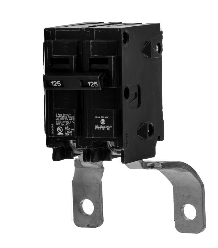 The Siemens MBK125 is a 2 Pole thermal magnetic molded case circuit breaker with a current rating of 125 Amps and a voltage rating of 120/240VAC. It has an interrupting rating of 22kAIC at 240V. The MBK125 has a plug-in connection type and includes long time and instantaneous trip functions.