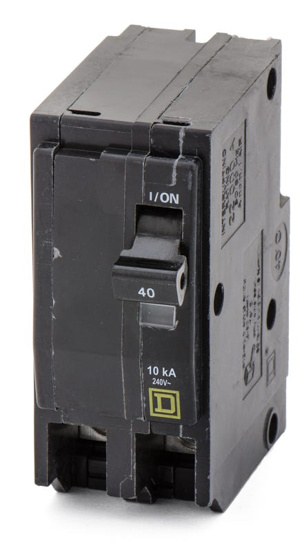 The Square D QO240H is a 2 Pole thermal magnetic molded case circuit breaker with a current rating of 40 Amps and a voltage rating of 120/240VAC. It has an interrupting rating of 10kAIC at 120/240VAC. The QO240H has a plug-in connection type and includes LI - long-time and instantaneous trip functions.