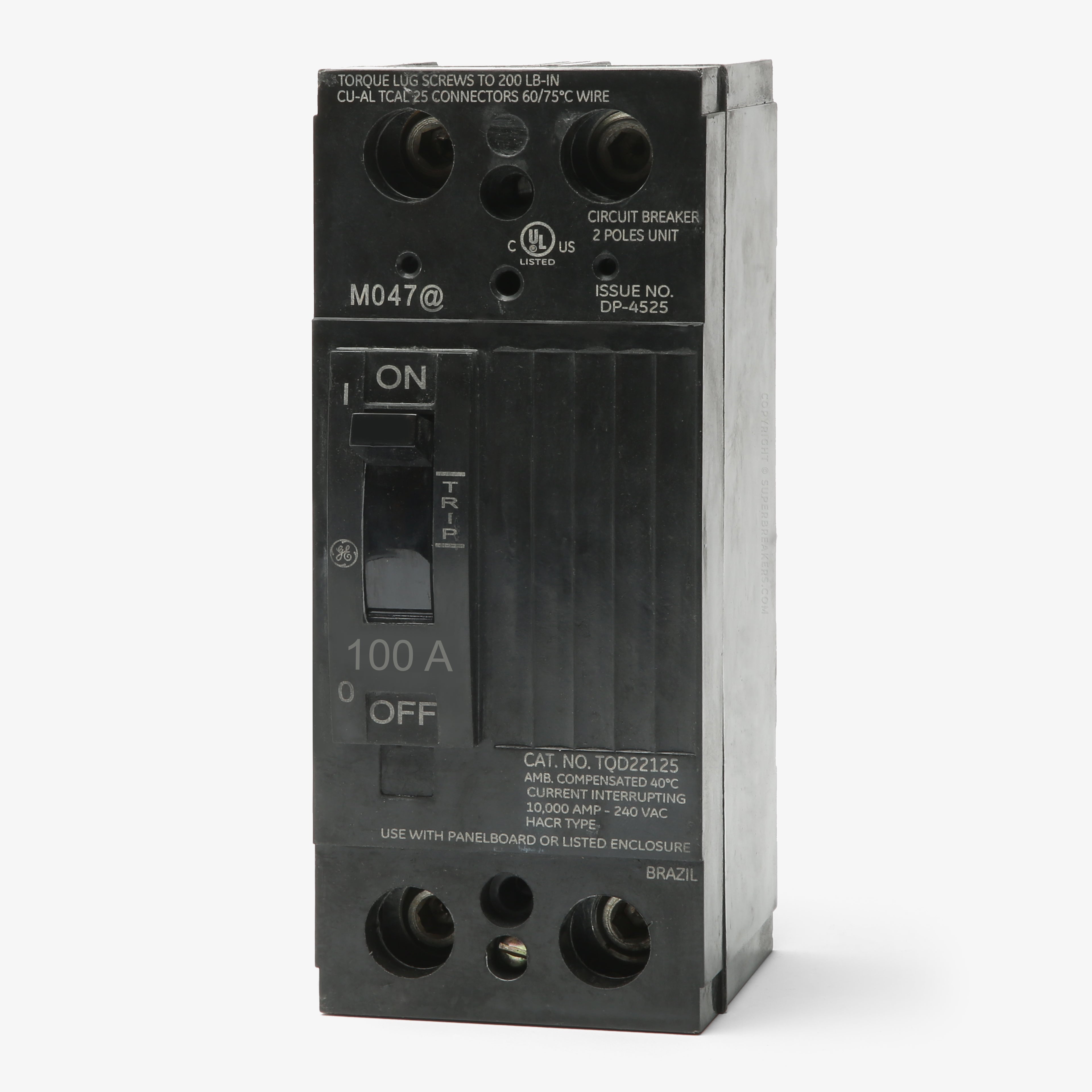 Operating within commercial power systems, this 100-amp two-pole molded case circuit breaker ensures robust overcurrent protection. The component is a core member of the Q-Line family. Engineered for specific infrastructure, it installs into GE A-Series panelboards and meter stacks. When modernizing switchgear, technicians often replace this model with XT3 or Formula A2 frames. Providing a 10kA interrupting rating at 240VAC, the device incorporates a trip-free mechanism.