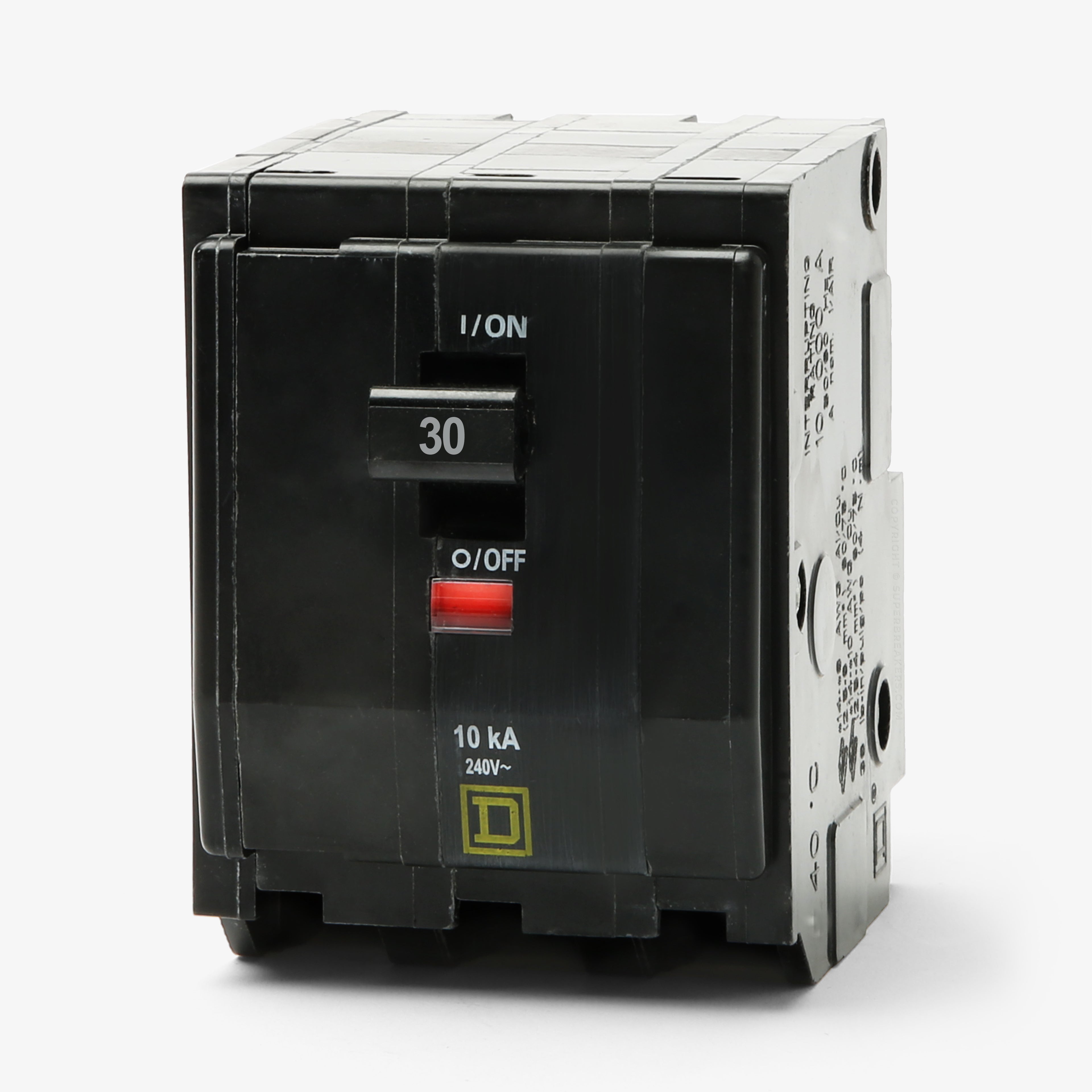 The Square D QO330 is a 3 Pole thermal magnetic molded case circuit breaker with a current rating of 30 Amps and a voltage rating of 120/240VAC, 48VDC. It has an interrupting rating of 10kAIC at 120/240VAC. The QO330 has a plug-in connection type and includes long time and instantaneous trip functions.