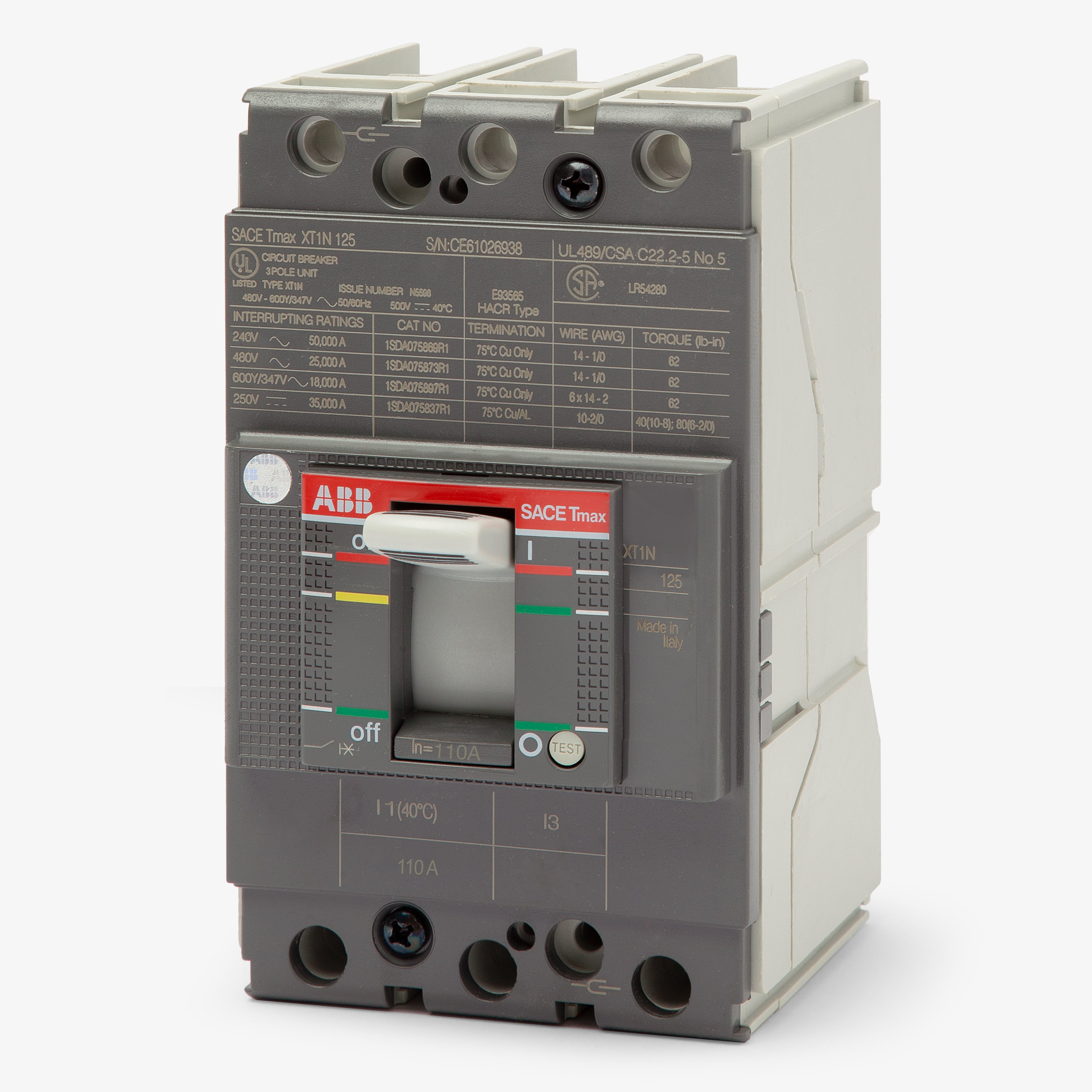 The ABB XT1NU3110AFD000XXX is a 3 Pole molded case circuit breaker with a current rating of 110 Amps.