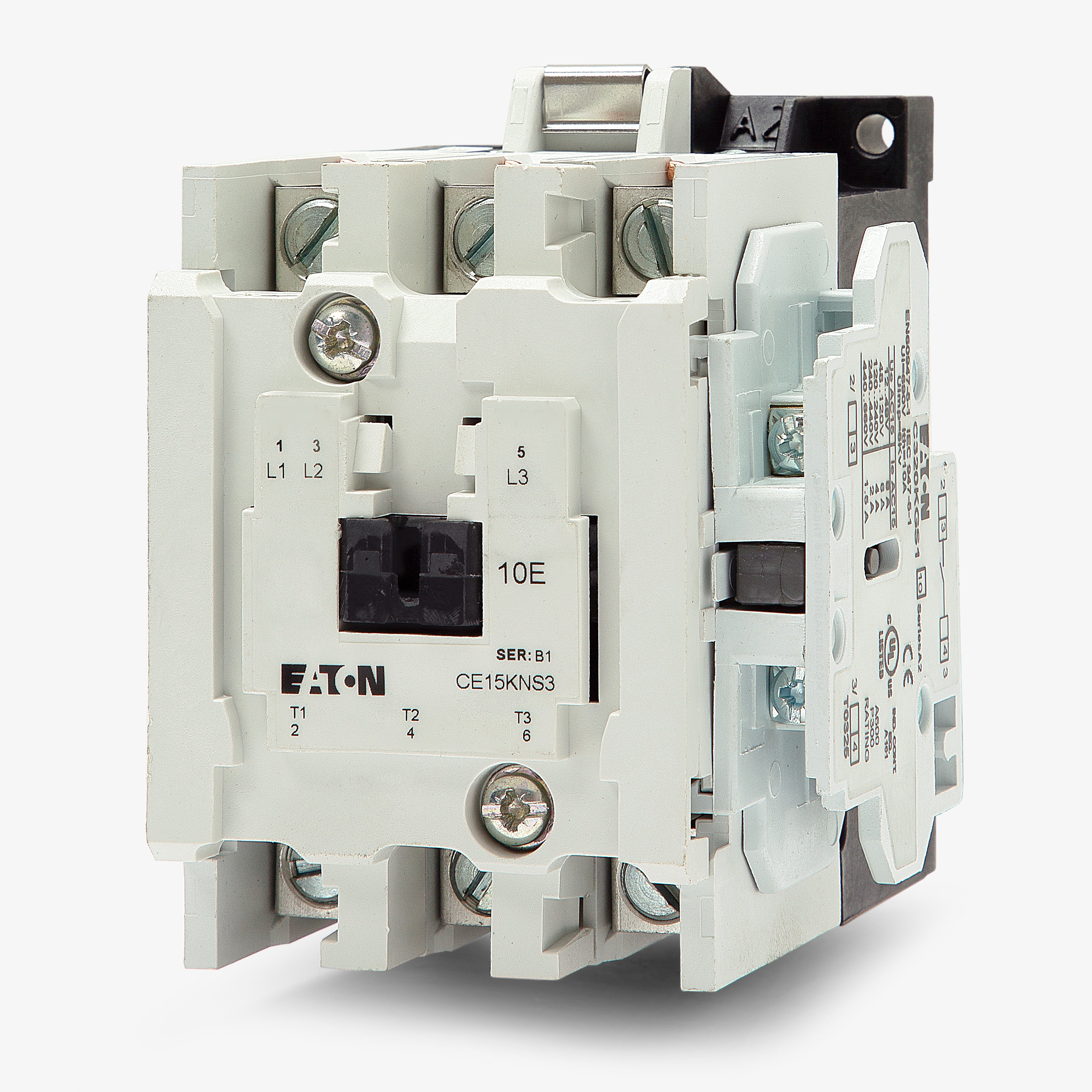 The Eaton CE15KNS3AB is a 3 Pole contactor with a current rating of 73 Amps and a voltage rating of 600V. It has a coil volts of 110VAC at 50Hz, 120VAC at 60Hz. The CE15KNS3AB has a C15NN frame type and it is used for motor control systems.