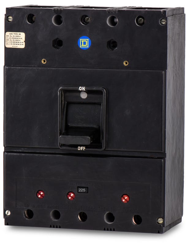The Eaton LA3400N is a 3 Pole non-automatic molded case circuit breaker with a current rating of 400 Amps and a voltage rating of 600VAC. It has an interrupting rating of 200kAIC@480V. The LA3400N has a bolt-on connection type and includes NA - no overcurrent protection functions.