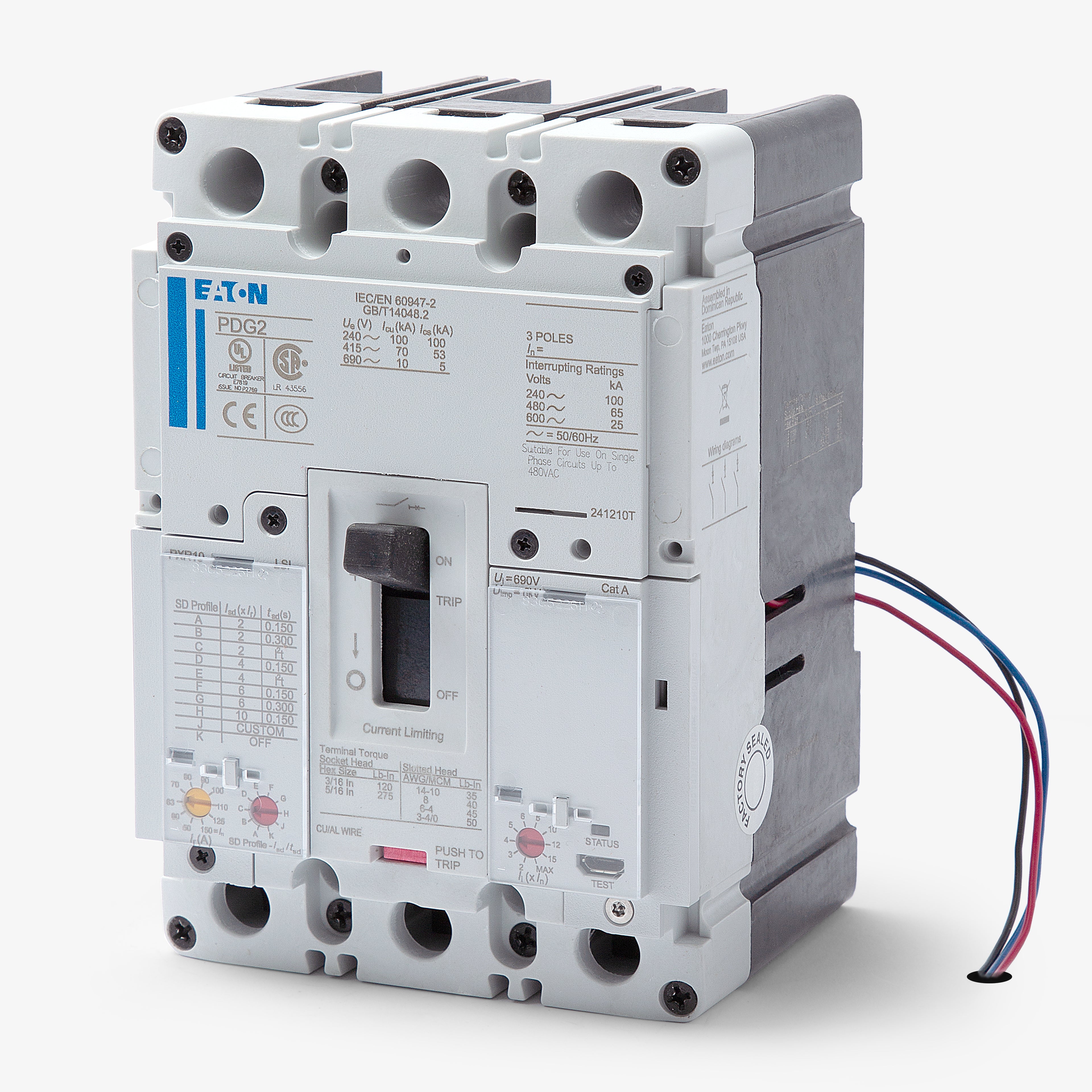 The Eaton PDG23M0150B2NL is a 3 Pole solid state molded case circuit breaker with a current rating of 150 Amps and a voltage rating of 600VAC. It has an interrupting rating of 65kAIC at 480V. The PDG23M0150B2NL has a bolt-on connection type and includes LSI - long-time, short-time and instantaneous trip functions.