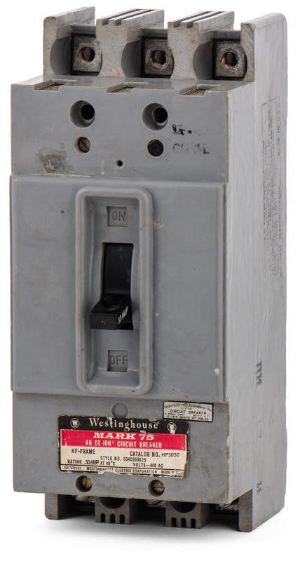 The Eaton HF3030 is a 3 Pole thermal magnetic molded case circuit breaker with a current rating of 30 Amps and a voltage rating of 600V. It has an interrupting rating of 22kAIC at 480V. The HF3030 has a bolt-on connection type and includes long time and instantaneous trip functions.