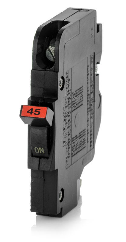 • Authentic Federal Pacific Product • Federal Pacific Electric American Circuit Breaker (FPE) • Stab-lok (NC) • 1 Pole • 45 Ampere Rating • Size 1/2" Wide
