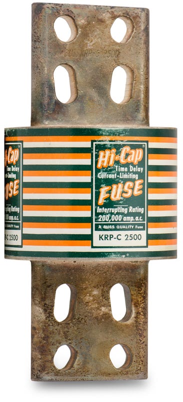 Bussmann low-peak time-delay fuse Class L 4 Sec time delay at 500 percent rated load characteristics 600 vac 2500 ampere interrupting Rating 300000 A (Symmetrical) Blade Terminal Diameter 4.8in Length 10.75in. We have this product in stock ready to ship today.