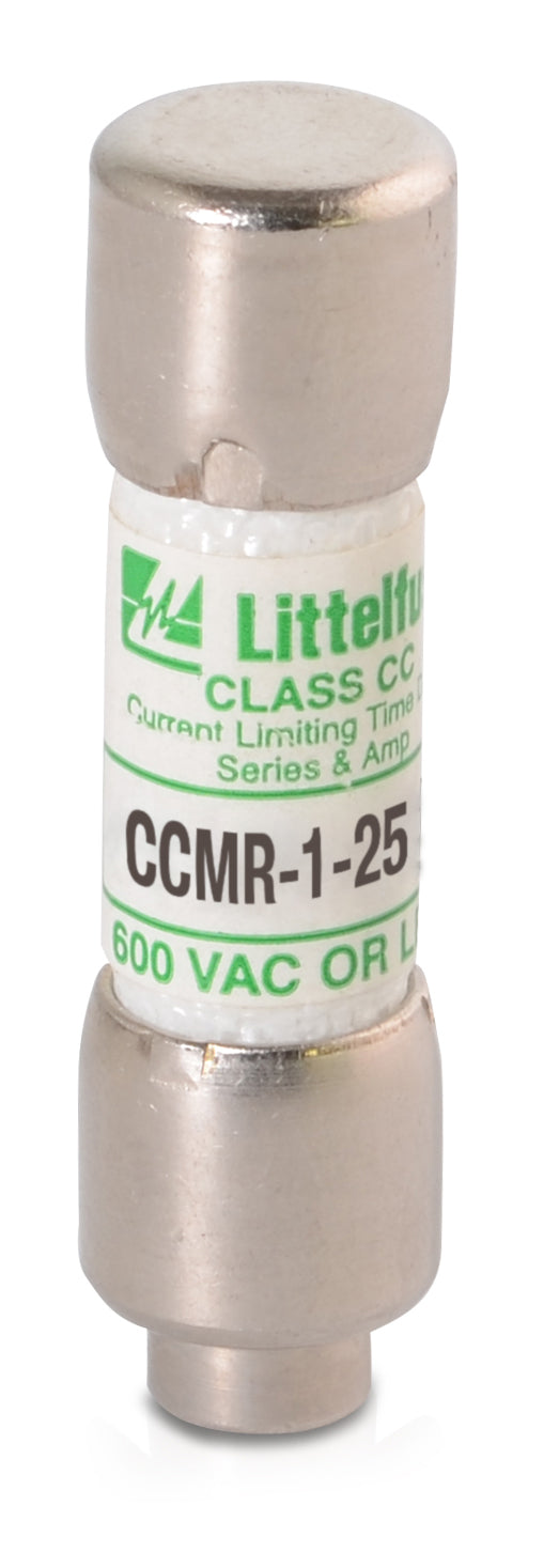 The Littelfuse CCMR-1-25 is a fuse with a current rating of 1.25 Amps and a voltage rating of 600VAC, 250VDC. It has an interrupting rating of 200kAIC at 600VAC. The CCMR-1-25 has a ferrule terminal connection type.