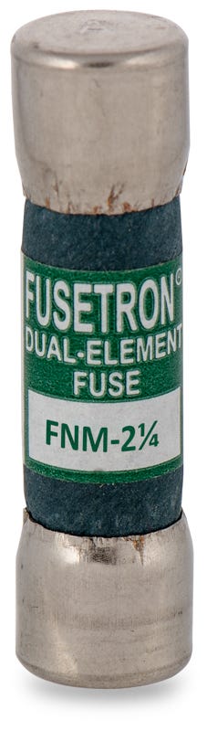 • Authentic Cooper / Bussmann Product • Time Delay Characteristics • 250 Vac • 2-1/4 Ampere • Interrupting Rating 100 Ampere At 250 Vac 10000 Ampere At 125 Vac • Ferrule Terminal • Diameter 13/32 Inch • Length 1-1/2 Inch • Approval Ul 248-14 Csa Ce • Fusetron[R] Brand • Fnm Model • Fiber Tube