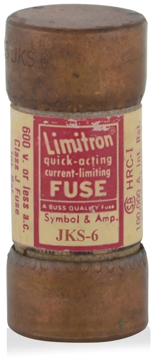 The Eaton JKS-6 is a fuse with a current rating of 6 Amps and a voltage rating of 600VAC. It has an interrupting rating of 200kA at 600VAC and features with ferrule connection type.