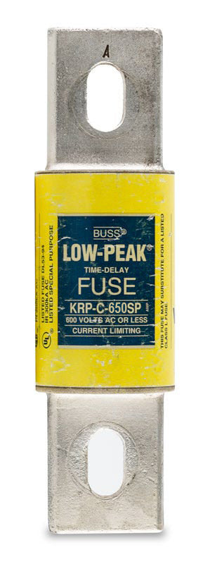 The Eaton KRP-C-650SP is a fuse with a current rating of 650 Amps and a voltage rating of 600VAC, 300VDC. It has an interrupting rating of 30kA at 600VAC. The KRP-C-650SP has a blade connection type and comes with melamine tube material.