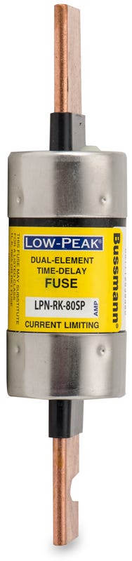 Cooper / Bussmann class Rk1 80 ampere time delay characteristics dual element current limiting midget fuse with maximum voltage rating of 250V / 125Vdc and standard interrupting rating of 300000 ampere (Symmetrical) 20000 ampere (Dc) terminal type blade.