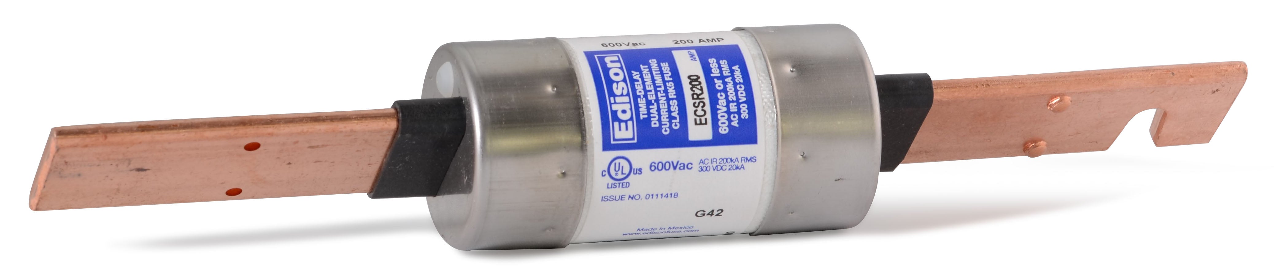 The Eaton ECSR200 is a fuse with a current rating of 200 Amps and a voltage rating of 600VAC. It has an interrupting rating of 200kAIC. The ECSR200 is used for AC power distribution system mains, feeders and branch circuits.