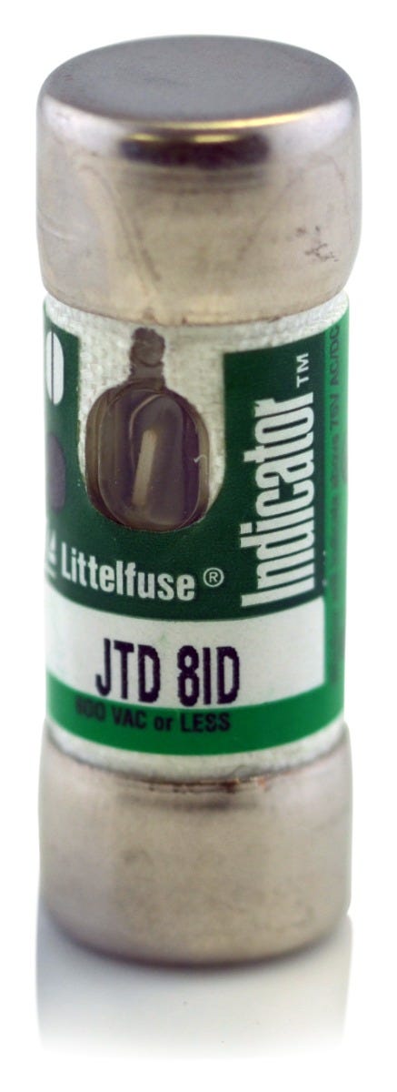 The Littelfuse JTD-008ID is a fuse with a current rating of 8 Amps and a voltage rating of 600VAC. It has an interrupting rating of 200kAIC at 600V. The JTD-008ID has a ferrule connection type and it is used for current limiting applications.