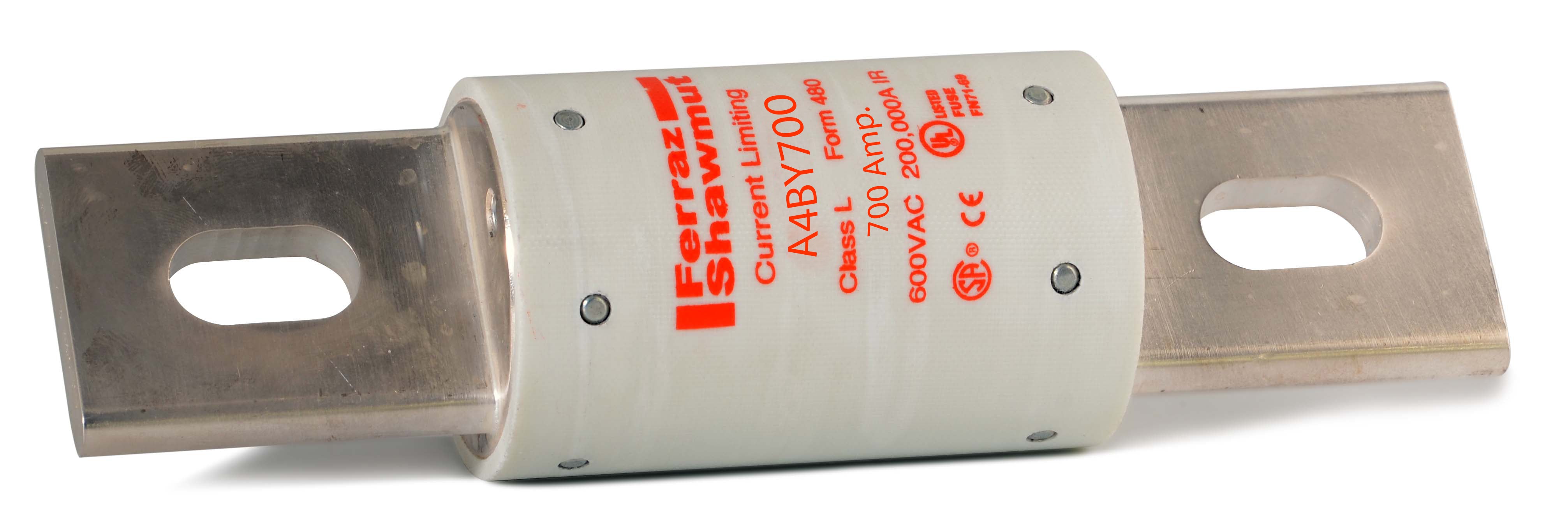 The Mersen A4BY700 is a fuse with a current rating of 700 Amps and a voltage rating of 600VAC, 300VDC. It has an interrupting rating of 100kA at 300VDC, 200kA at 600VAC. The A4BY700 has a bolted mounting type and it is used for mains, feeders, circuit breakers, load centers, panelboards, switchboards, metering center applications.