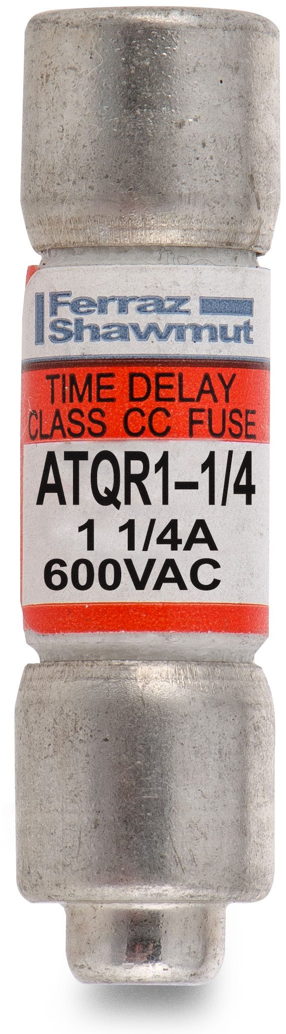 The Mersen ATQR1-1/4 is a fuse with a current rating of 1.25 Amps and a voltage rating of 600VAC, 300VDC. It has an interrupting rating of 100kAIC at 300VDC, 200kAIC at 600VAC. The ATQR1-1/4 has a clip mounting type and it is used for control transformers, solenoids, inductive loads, lighting, heating and general-purpose loads, residential, commercial and industrial applications.