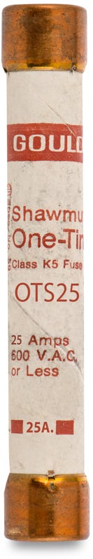 Mersen / Ferraz Shawmut class K5 25 ampere one time characteristics standard Power fuse with maximum voltage rating of 600V and high interrupting rating of 50 kiloampere at 600V for protection of control or solenoid circuit terminal type ferrule.