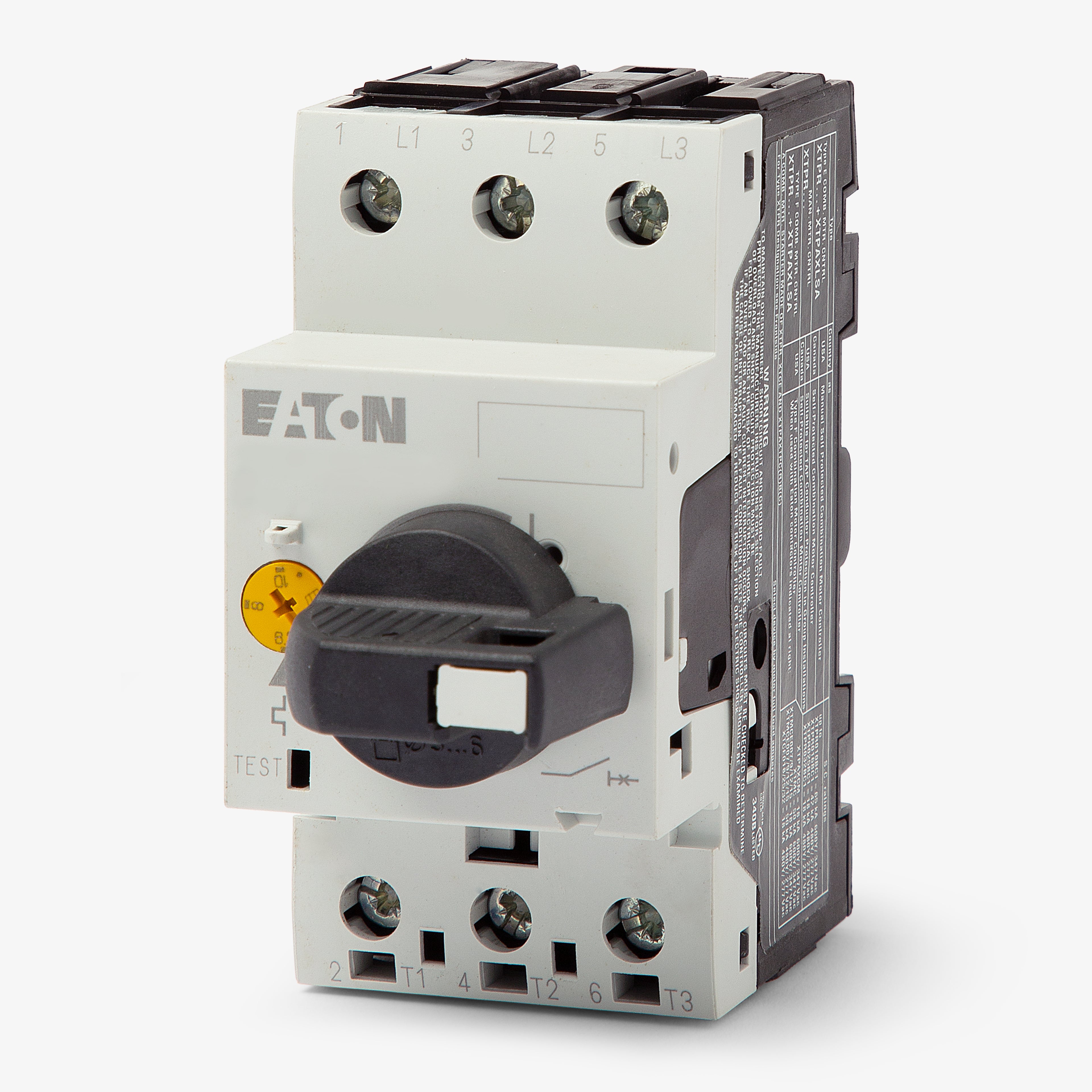 The Eaton XTPR010BC1 is a 3 Pole manual motor protector with a current rating of 6.3-10 Amps and a voltage rating of 600VAC. The XTPR010BC1 has a din rail, panel mounting type and it is used for commercial - institutional buildings - structures - safety and security systems application.