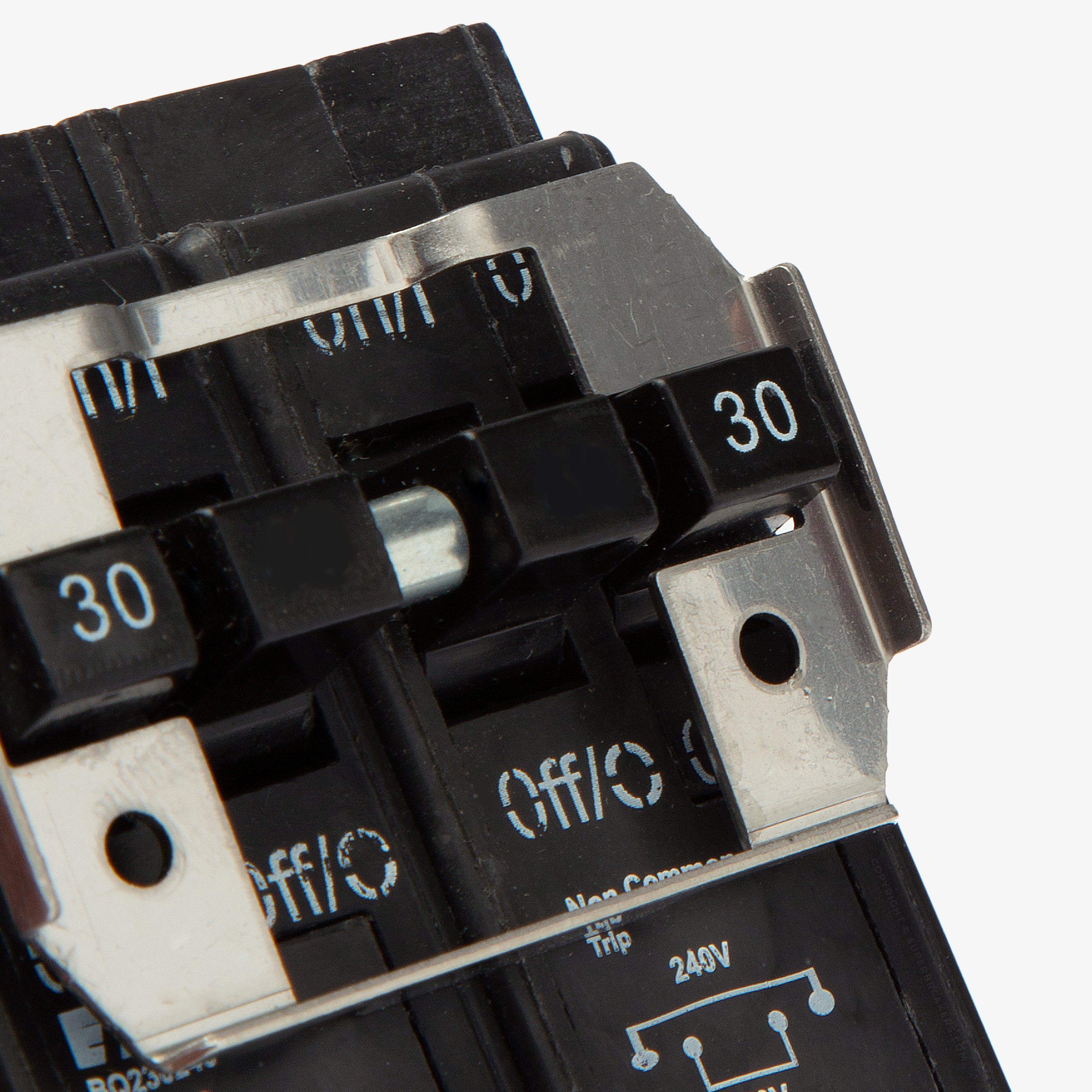 The Eaton BQC230215 is a quad molded case circuit breaker with a current rating of (1) 2-Pole 30 Amps, (1) 2-Pole 15 Amps and a voltage rating of 120/240VAC. It has an interrupting rating of 10kAIC at 240V. The BQC230215 has a plug-on mounting type and includes LI - long-time and instantaneous trip functions.