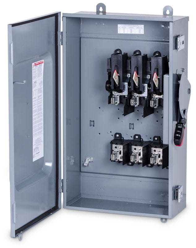 • Authentic Square D H364AWK Safety Switch • Short Circuit Current Rating: 10kA (Class H or K) - 200kA (Class R or J) • Mounting Type: Surface • Type of Duty: Heavy Duty • Number of Poles: 3-Pole • Maximum Voltage Rating: 600V • Terminal Type: Lugs • Wire Size: #6 to 250 AWG/kcmil(Al/Cu) • Action: Single Throw • Ampere Rating: 200A • Approvals: UL Listed • Enclosure Type: Rainproof Sleet/Ice proof and Dust tight (Indoor/Outdoor) • Electrical Interlock: None • Enclosure Rating: NEMA 3R/12 • Factory Installed Neutral: No • Disconnect Type: Fusible • Enclosure Material: Galvannealed Steel • Heavy Duty Safety Switches are needed when maximum performance and continuity of service is essential for commercial and industrial applications. Equipped with fuses they can provide over-current and short-circuit protection.