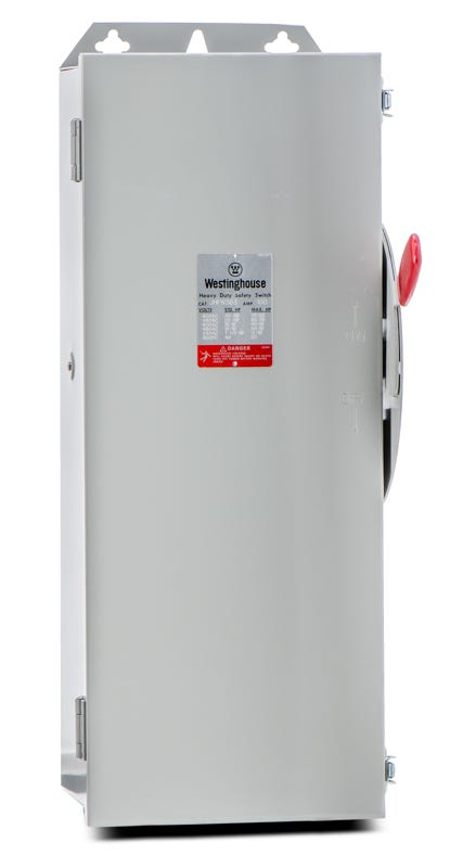 Westinghouse type JHFN three pole three wire 100 ampere heavy duty safety and disconnect switch with maximum voltage rating of 600V nema rating fused nema 12.