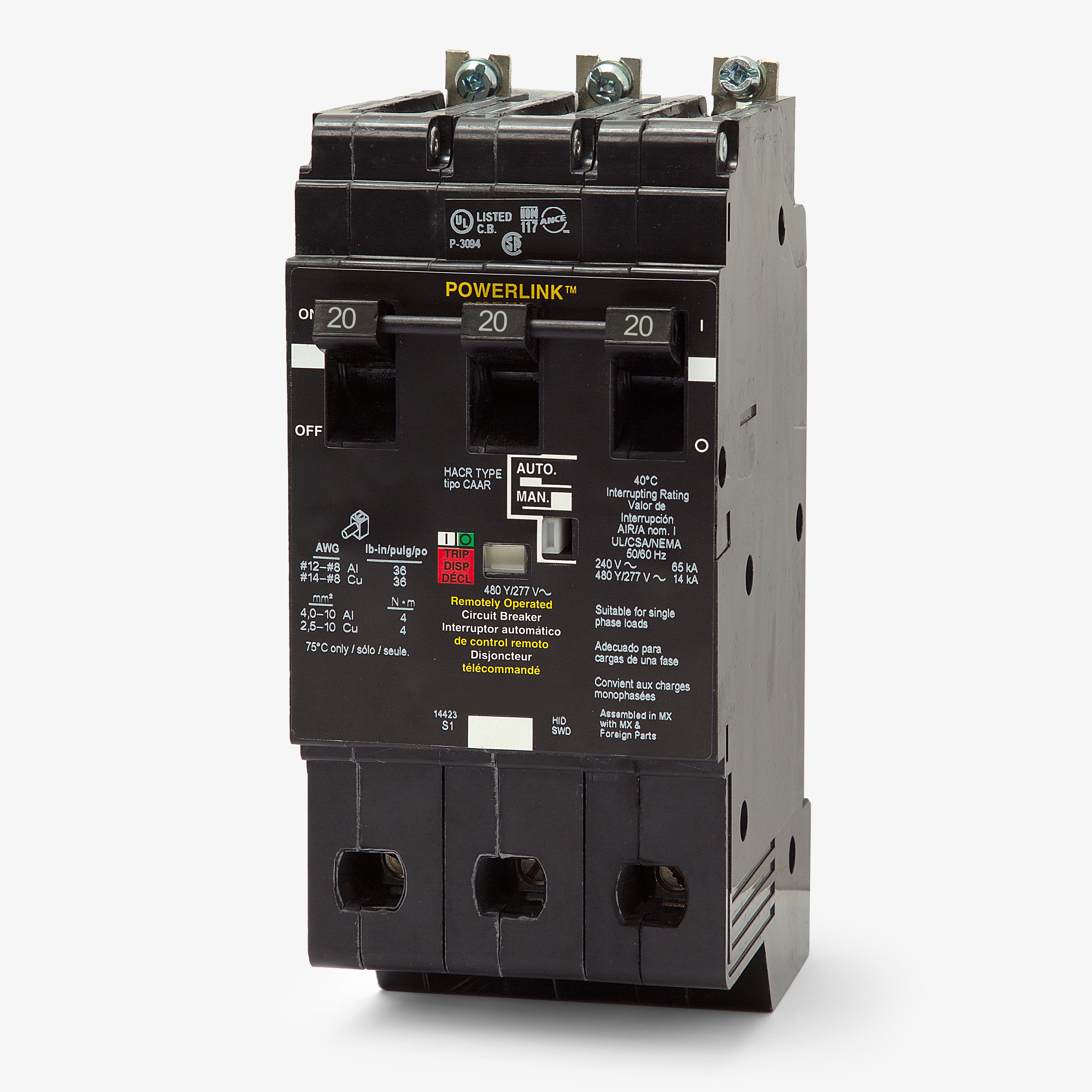 The Square D ECB34020G3 is a 3 Pole thermal magnetic molded case circuit breaker with a current rating of 20 Amps and a voltage rating of 480Y/277VAC. It has an interrupting rating of 14kAIC at 480Y/277VAC, 42kAIC at 240VAC. The ECB34020G3 has a bolt-on connection type and includes long time and instantaneous trip functions.