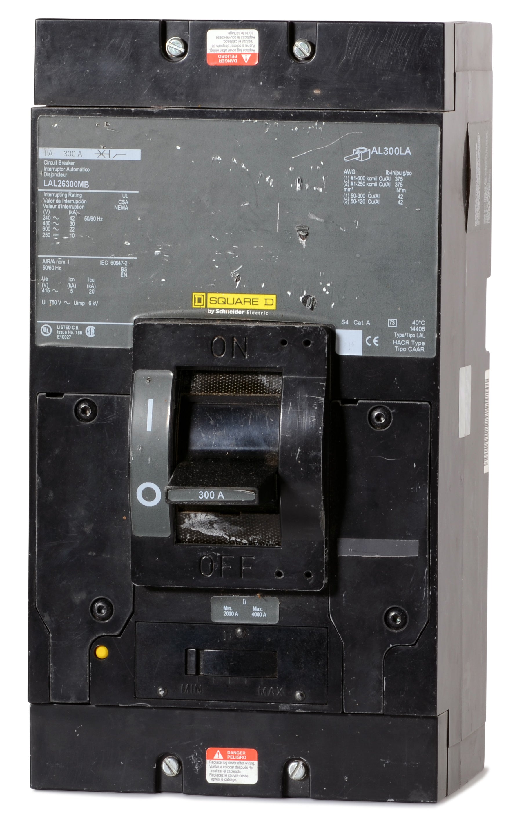 The Square D LAL26300MB is a 2 Pole thermal magnetic molded case circuit breaker with a current rating of 300 Amps and a voltage rating of 600VAC, 250VDC. It has an interrupting rating of 30kAIC@480V. The LAL26300MB has a unit mounting type and includes long time and instantaneous trip functions.