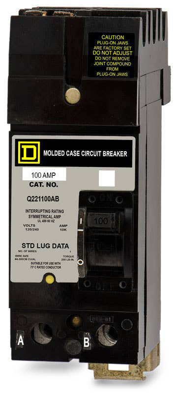 The Square D Q221100AB is a 2 Pole thermal magnetic molded case circuit breaker with a current rating of 100 Amps and a voltage rating of 120/240V. It has an interrupting rating of 10kAIC at 240V. The Q221100AB has an I-Line style plug-in connection type and includes long time and instantaneous trip functions.
