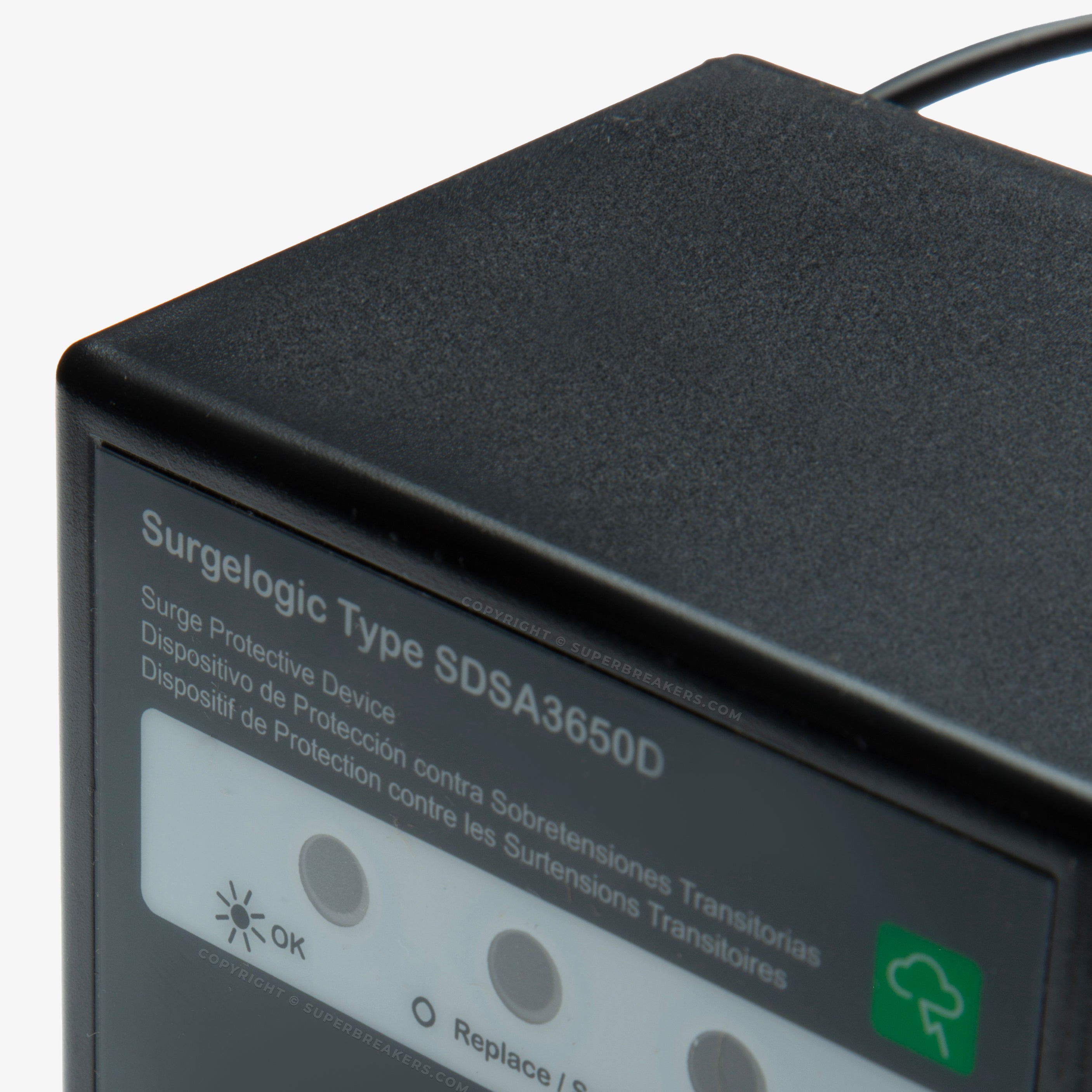 The Square D SDSA3650D is a 3 Pole surge protection device with a current rating of 40000 Amps and a voltage rating of 600VAC. It has a short circuit current rating of 200kAIC. The SDSA3650D has a panel mounting type and it is used for service entrance, branch panel, sensitive electronic, pumps, motor, indoor and outdoor applications.
