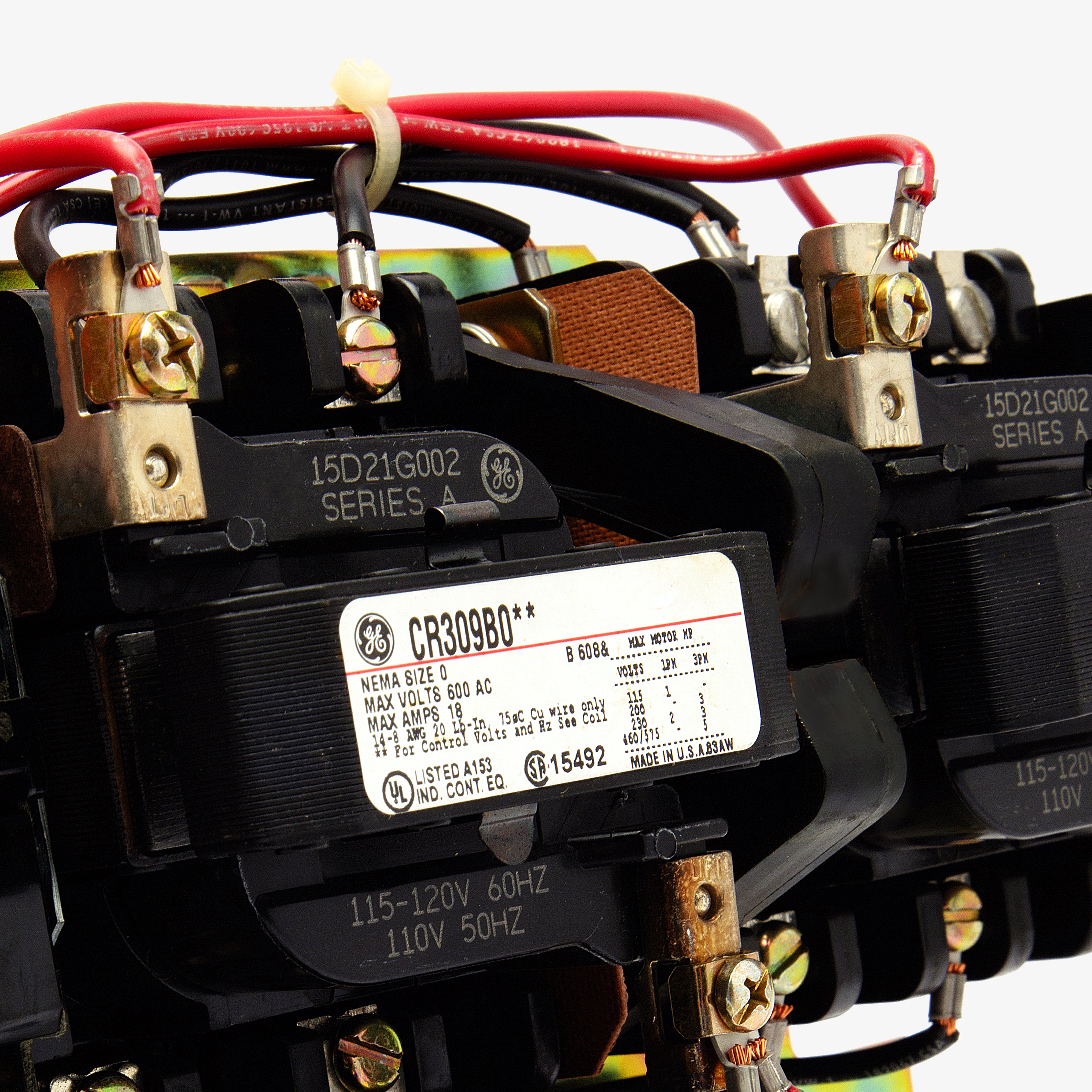 The General Electric CR309B002 is a 3 Pole starter with a current rating of 18 Amps and a voltage rating of 600VAC. It has a coil volts of 115VAC at 50Hz, 120VAC at 60Hz. The CR309B002 has a surface mounting type and it is used for CR309 motor control systems.