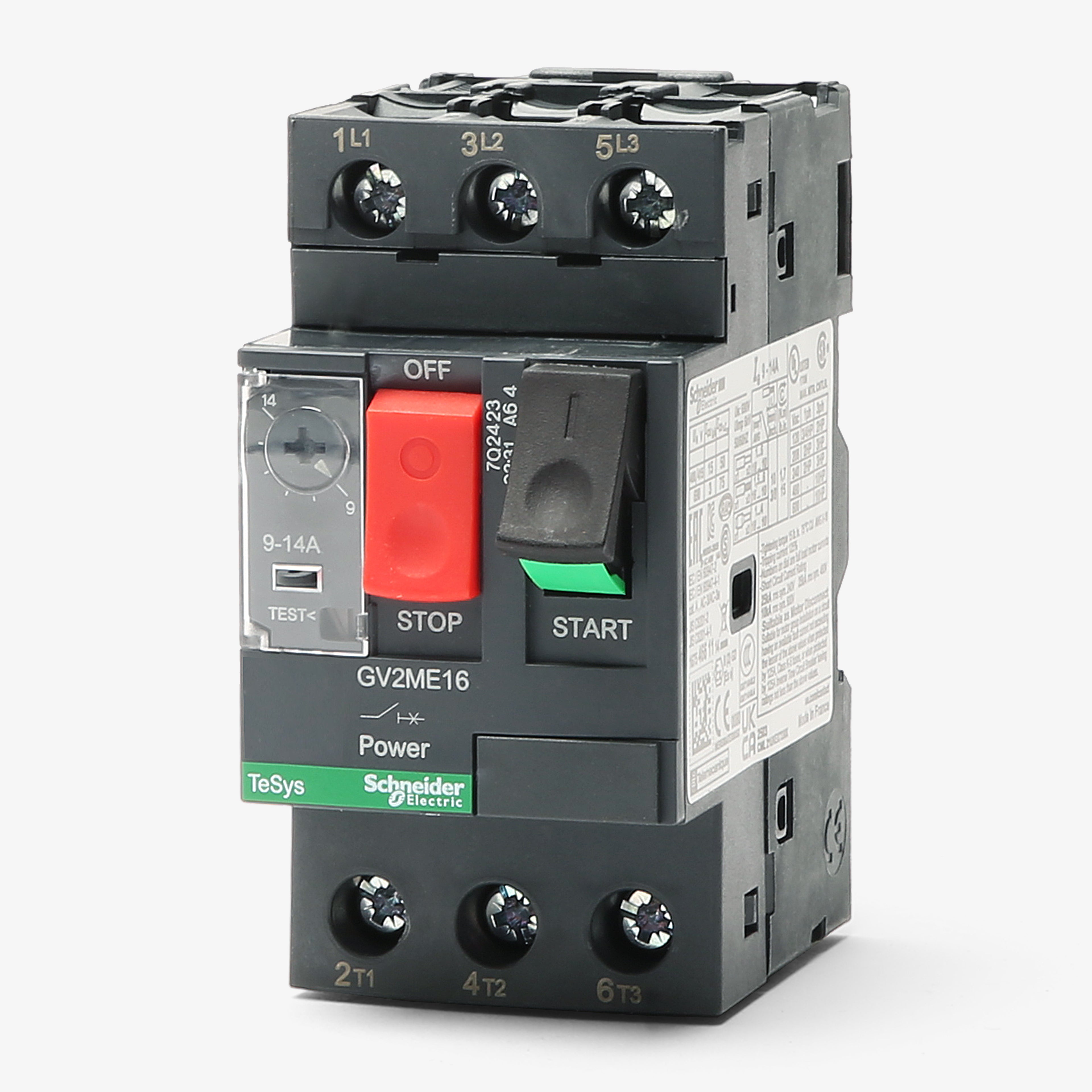 The Schneider Electric GV2ME16 is a 3 Pole starter with a current rating of 9-14 Amps and a voltage rating of 690VAC. It has a screw clamp terminal connection. The GV2ME16 is used for LC1D motor control systems.