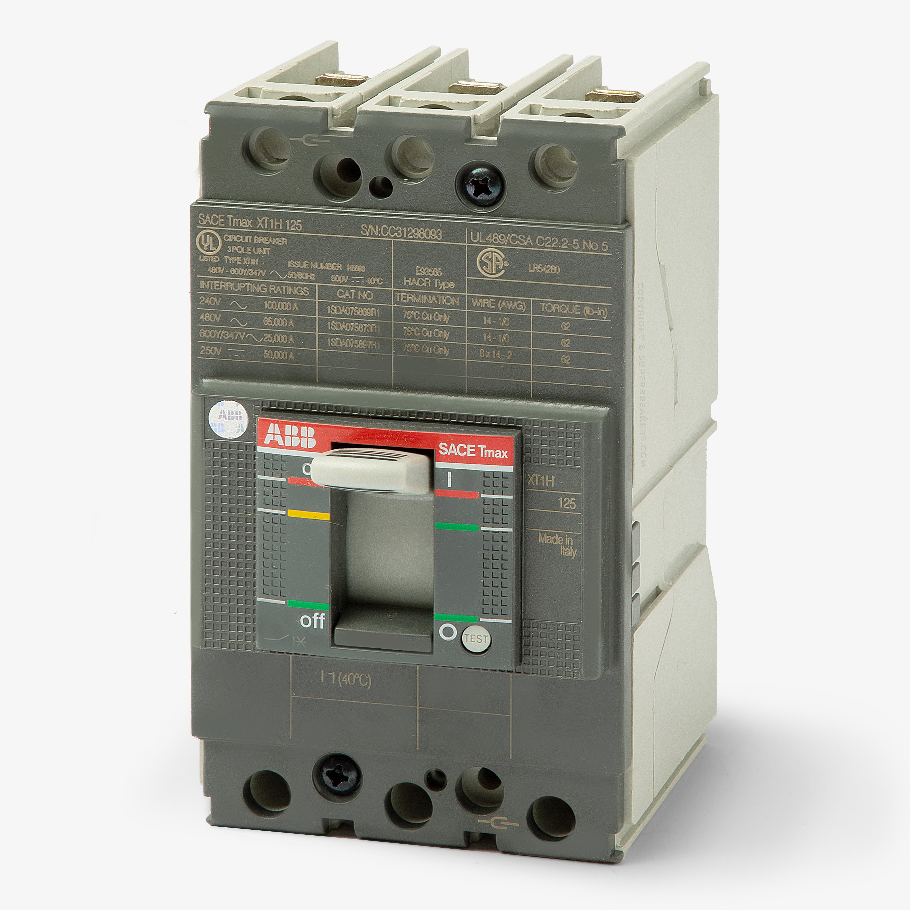 Built for industrial applications, the ABB XT1NU3020AFF000XXX is a 20A, 3-pole molded case circuit breaker from the SACE Tmax XT1N series. This unit-mount breaker fits ABB SACE Tmax XT panelboards and switchboards. It acts as a reliable replacement for older Tmax T1 series components. Featuring a 25kAIC rating at 480VAC, it uses a fixed thermal-magnetic trip unit. It is configured with front flat terminals on both sides, requiring separate lugs for wiring.