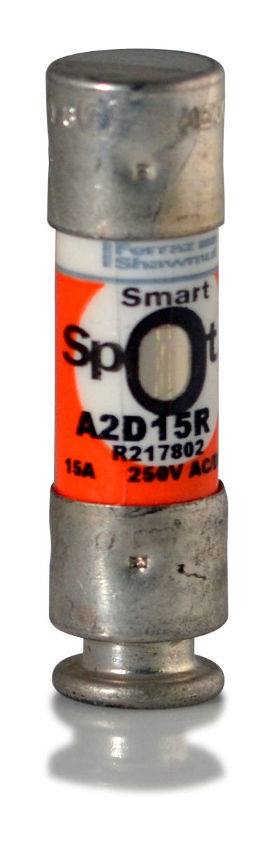 The Mersen A2D15R is a fuse with a current rating of 15 Amps and a voltage rating of 250VAC/VDC. It has an interrupting rating of 200kAIC at 250VAC/VDC. The A2D15R has a clip mounting type and it is used for motors, safety switches, transformers, branch circuit protection, disconnects, control panels, all general-purpose circuits applications.