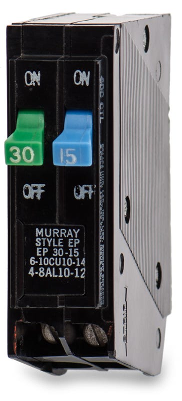 Maximizing available slots in residential panelboards, this non-CTL tandem breaker supplies both a 30A and a 15A circuit from one position. It serves as an ideal maintenance solution for legacy Murray enclosures requiring exact fitment without adapter kits. The unit seamlessly replaces discontinued MP3015 and Q3015 models while utilizing a secure plug-on connection. Built with Insta-Wire terminals and thermal-magnetic trip technology, it handles standard 120/240V residential loads safely.