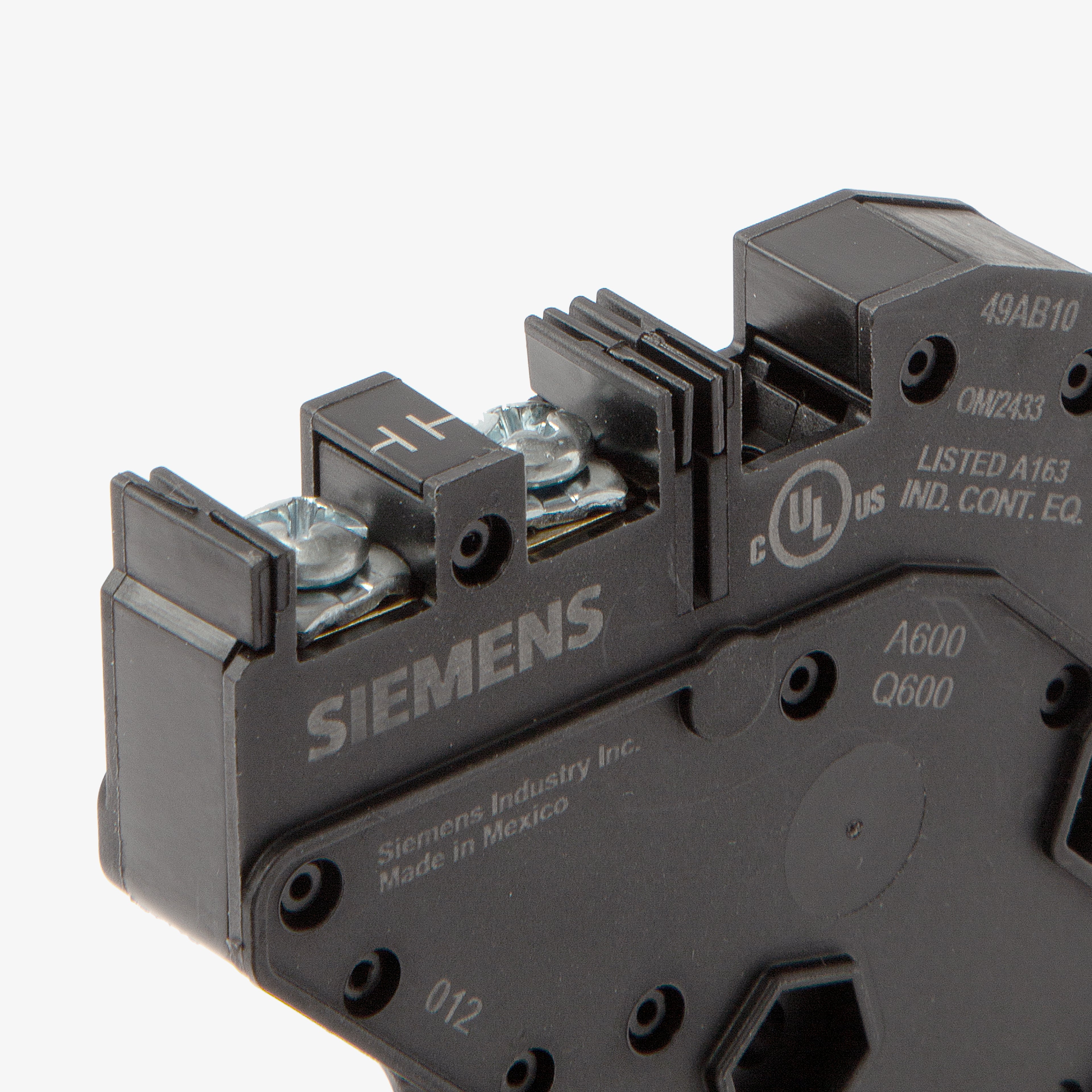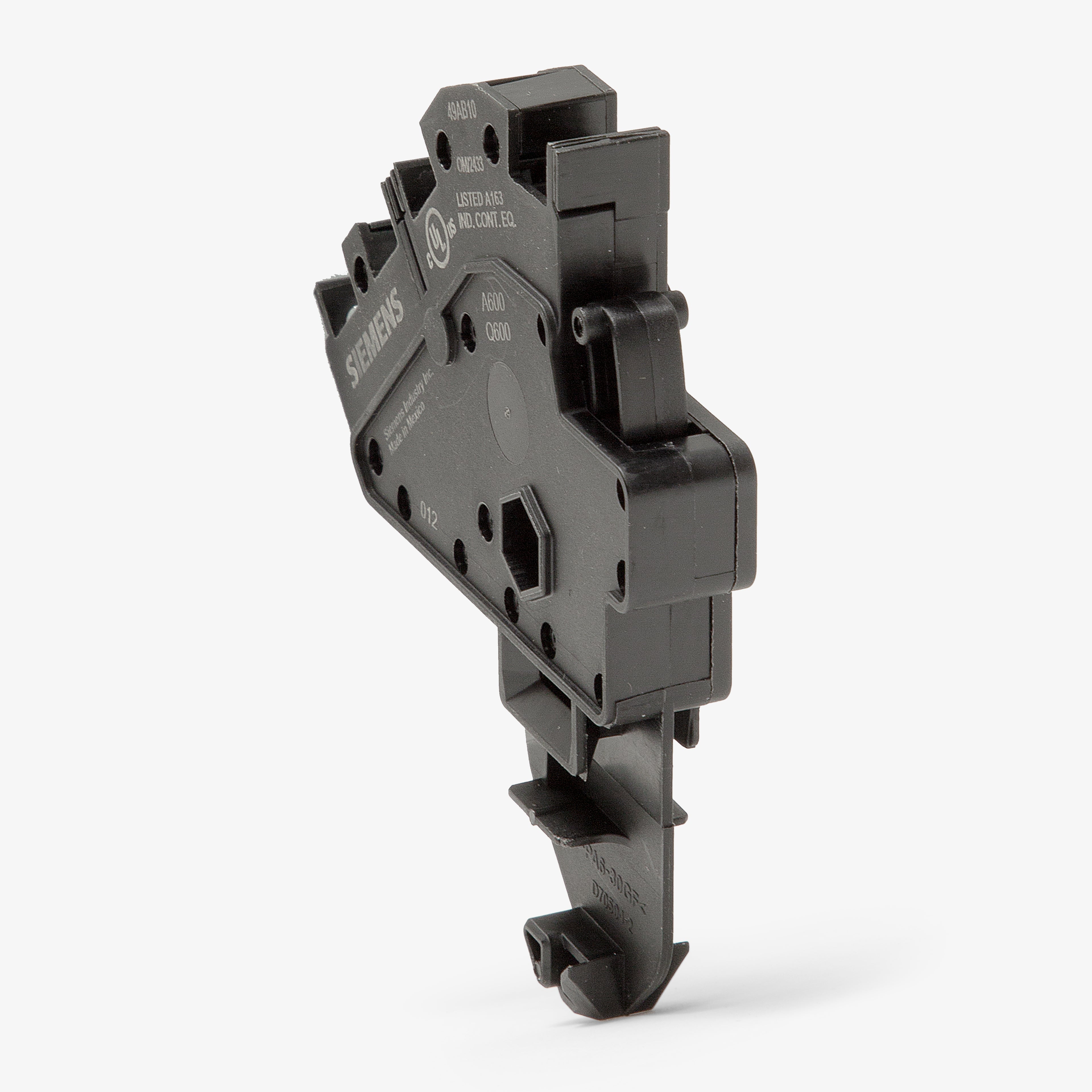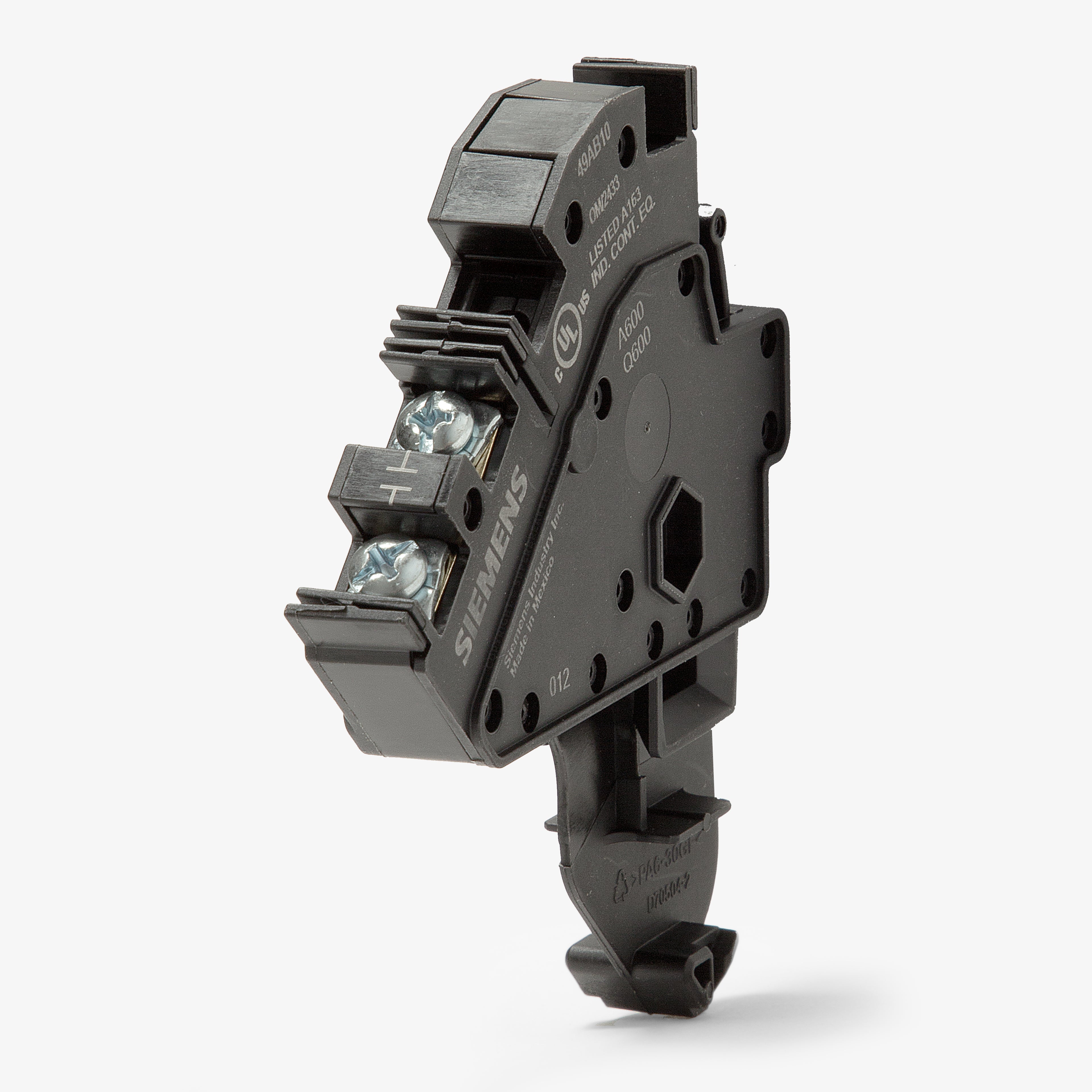 The Siemens 49AB10 is an auxiliary contact block with a current rating of 10 Amps and a voltage rating of 600VAC. It has a contact configuration of 1NO. The 49AB10 has a screw terminal connection.