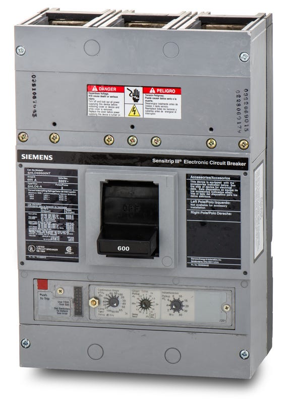 • Authentic Siemens / ITE Product • Electronic Molded Case • Sld Frame • UPC : 783643217546 • 600 Vac At 50/60 Hz • 600 Ampere • 3 Pole • Interrupting Rating 100 Kiloampere At 240 Vac 65 Kiloampere At 480 Vac 35 Kiloampere At 600 Vac (Ul) • Terminal Not Included • Size 7.5 Inch W X 5.44 Inch D X 11 Inch H • Sentron[R