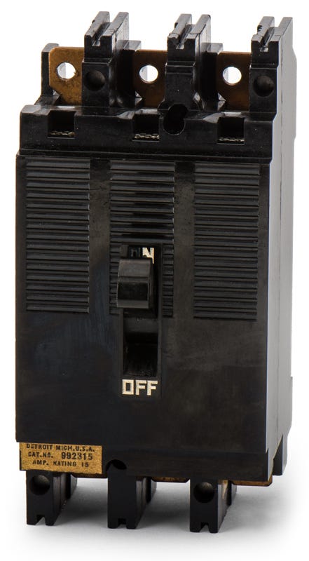 Built for commercial and industrial use, the 992315 is a three-pole, 15-amp molded case circuit breaker from Square D's legacy 99 Series. It delivers dependable overcurrent and short-circuit protection for three-phase systems. Featuring a sturdy bolt-on configuration, this breaker mounts into Square D ML panelboards. It provides a straightforward replacement solution for maintaining older electrical distribution setups. The unit offers a 10 kAIC rating at 240VAC with fixed trip elements.