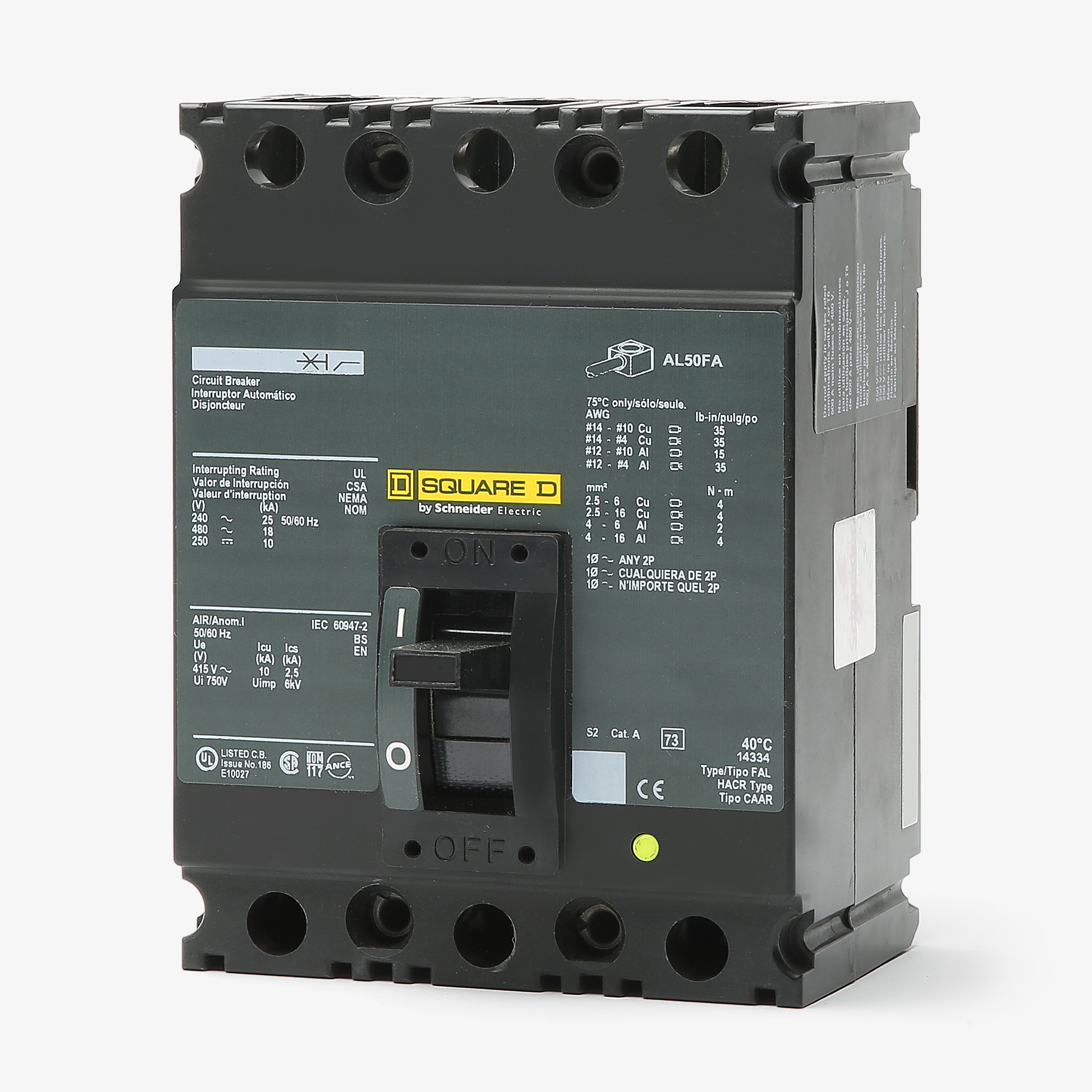 CSA C22.2 No. 5, HACR Rated, IEC 60947-2, NEMA AB-1, UL 489