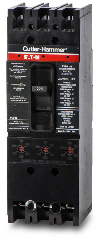 Engineered for commercial power distribution, the ABB JS360225A is a 3-pole, 225A molded case circuit breaker delivering reliable LI protection. This unit mount MCCB fits Eaton Series C and Thomas & Betts panelboards. As a legacy J-frame breaker, it serves as a direct replacement for JDB3225 and JD3225 models, ensuring continued operation of existing infrastructure. Rated for 22kAIC at 480VAC, it features an adjustable magnetic trip and comes with line and load lugs for 4 AWG-350 kcmil wire.