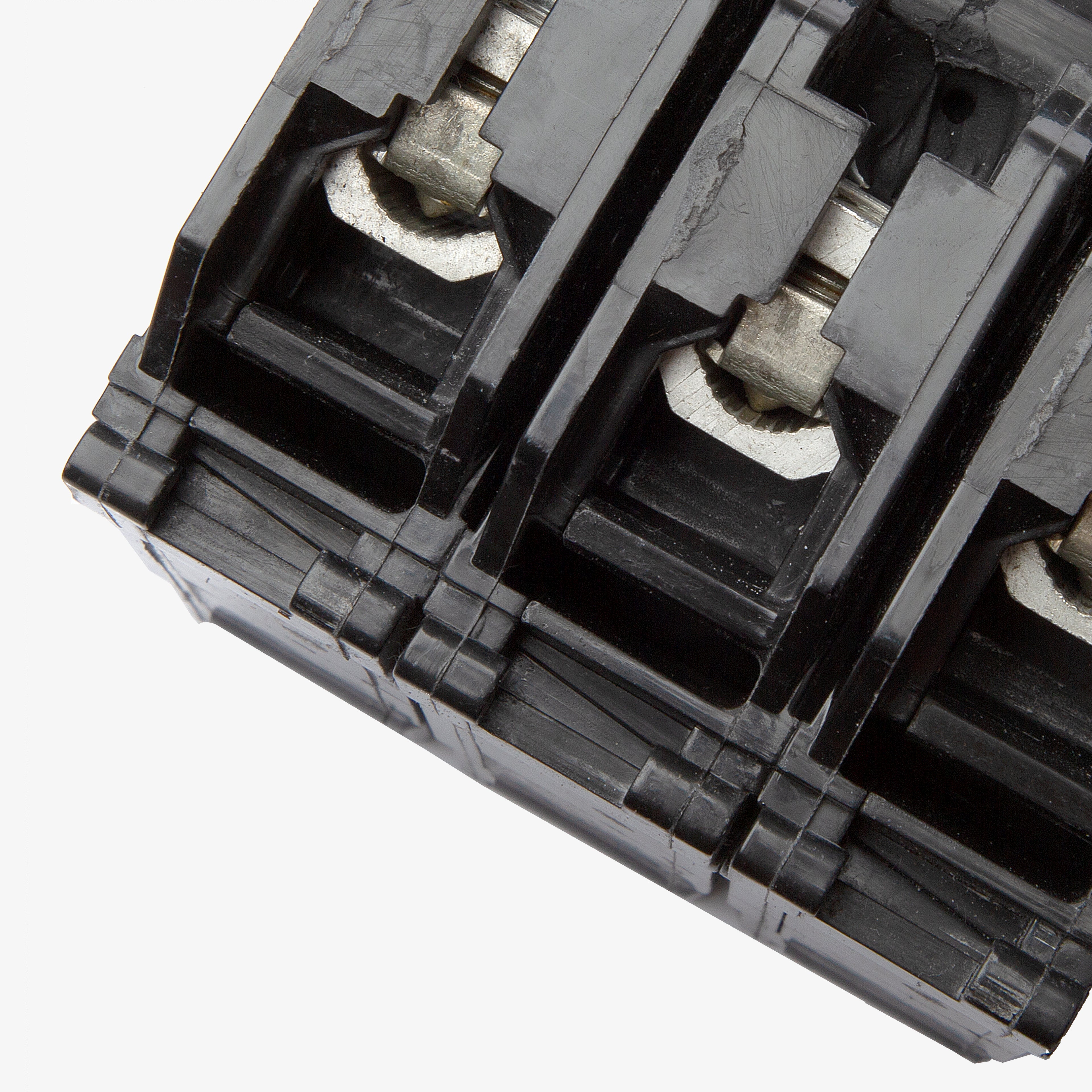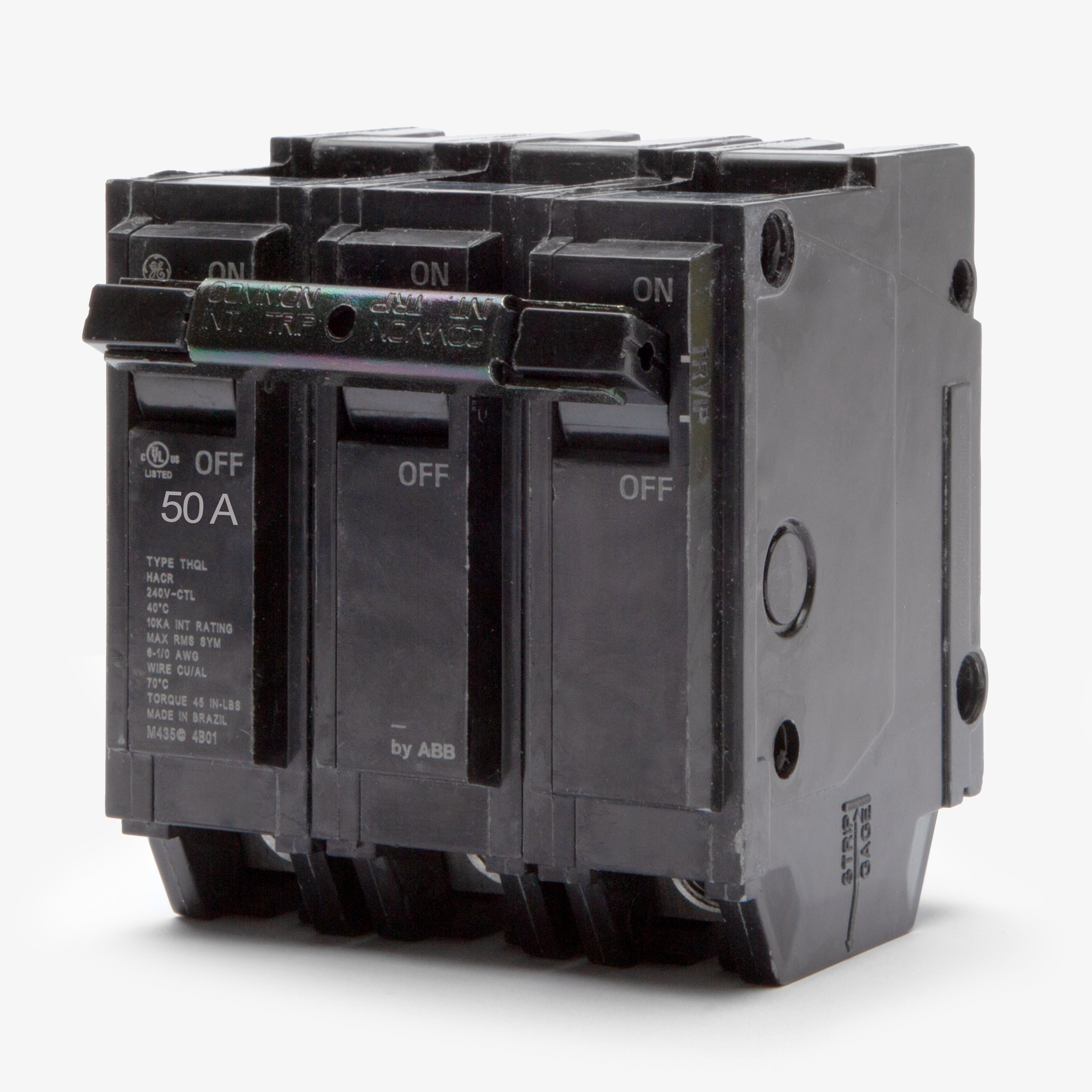 Part of the Q-Line family, the GE THQL32050 is a 50-amp, three-pole miniature circuit breaker. It delivers reliable thermal-magnetic protection for commercial systems. Designed for easy installation, this plug-on breaker fits into GE PowerMark Gold load centers and A-Series panelboards. The box lug terminals accommodate 8-3 AWG wire. With a 10 kAIC rating at 240VAC, it features a quick-make, quick-break mechanism and an internal common trip. It is HACR rated for HVAC applications.